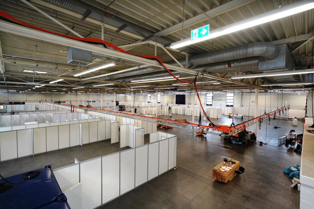 Die Herausforderungen sind enorm: Nicht nur die Zahl potenziell zu versorgender Impflinge macht eine besondere Logistik erforderlich, auch stete Änderungen in den Landesvorgaben gilt es kurzfristig umzusetzen. Seit Donnerstag (10. Dezember) haben die Messebauer hier das Regiment übernommen, bis dahin wurden Kabel gezogen, Stromleitungen verlegt, aber auch schwere Maschinen in die Halle gefahren und binnen Stunden die so wichtigen Traversen für das sowohl organisatorische als auch medizinische Gesamtkonzept aufgebaut.